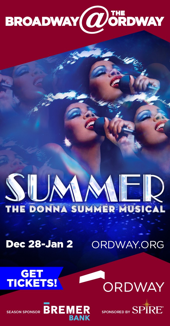 Donna Summer became an icon by breaking through barriers and risking it all. Featuring more than 20 of her greatest hits—including “Hot Stuff,” “She Works Hard For The Money,” and “Last Dance”—this musical tells an astonishing story of Summer’s tumultuous life and tempestuous loves. Summer: The Donna Summer Musical is an unforgettable and moving tribute to the voice of a generation. For tickets, call the box office at 651.224.4222 or visit ordway.org/events/summer-musical.