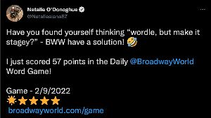 The reviews are in and everyone loves the new daily BroadwayWorld Word Game! The solution can be any theatre related word or phrase - a show title, performer, recognizable lyrical phrase, and more.